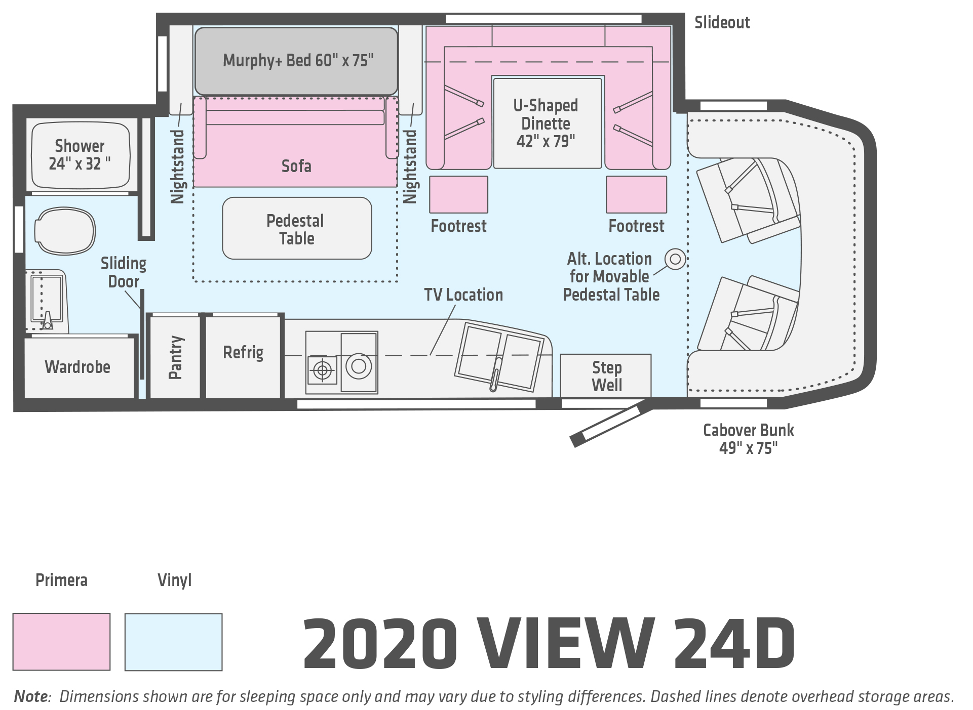 The winnebago view has 3 different floorplans 24j 24v and the new 24d.
