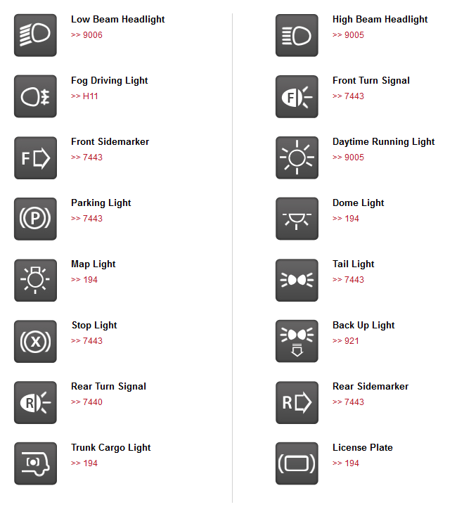 Also find your other car light bulb sizes including your fog light reverse light turn signal brake light and more.
